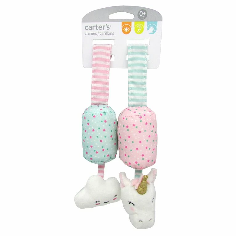 This cute plush toy from Carter’s produces a soothing chime sound to calm and relax baby and the plush design will feel soft and cuddly in baby’s hands. Easily attached to your to stroller, car seat, high chair or shopping cart, this baby Carter’s chime toy set helps keep your baby entertained while on the go. Perfect for your own baby or give it as a gift!