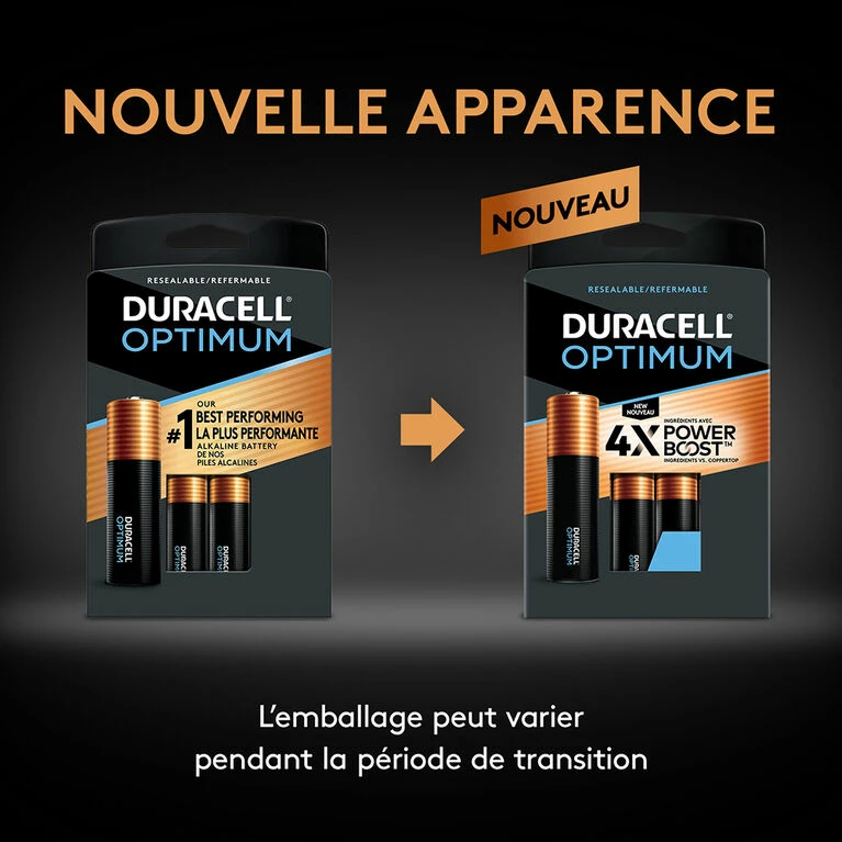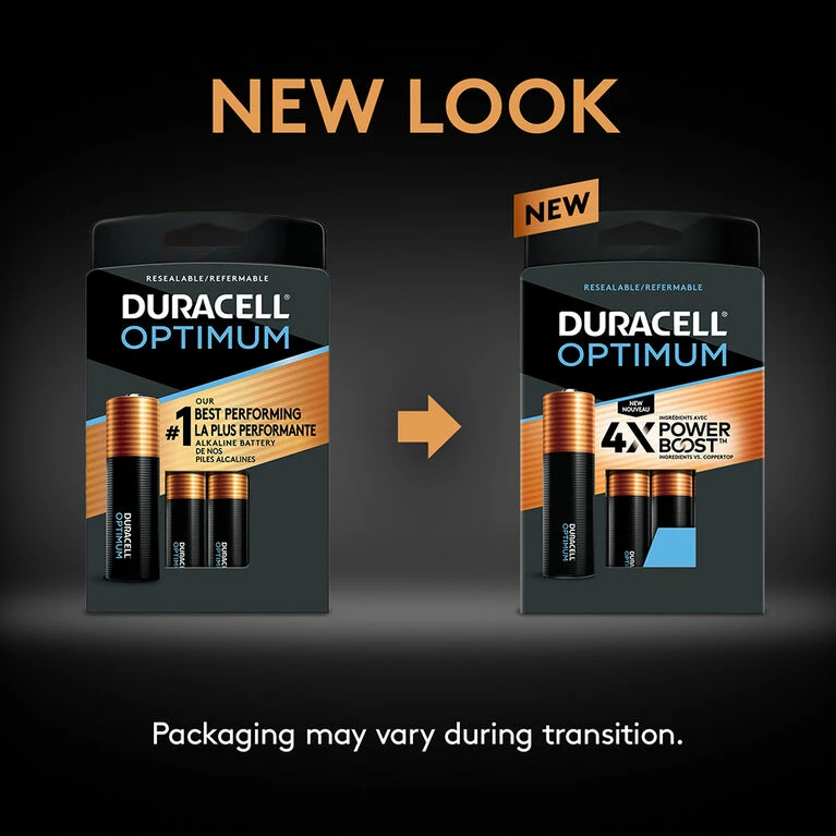 Duracell Optimum AA batteries, our #1 best performing alkaline batteries, are now formulated with 4X the patented POWER BOOST Ingredients vs Coppertop AA. Compatible with any AA battery-operated device, these AA batteries are packaged in a slider pack with resealable storage tray for a more organized way to store your batteries. Duracell guarantees these batteries against defects in material and workmanship. From storm prep to holiday needs, Duracell is the #1 trusted battery brand for the moments that matter most.
