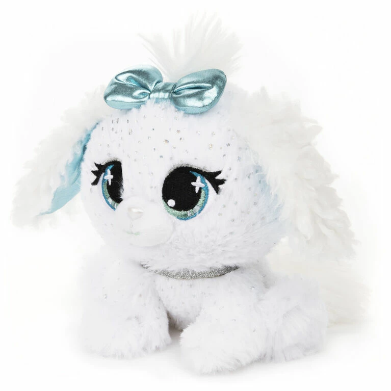 P.Lushes Pets are designer plush from all around the world who love to look their best. Everywhere is your personal runway with P.Lushes Pets! This stylish squad of fabulous fashionistas serves chic with a sprinkle of attitude and a whole lot of glitter. Luxe, premium fabric and a sparkling collar enhance their fashion-inspired looks! Bling brunch on! Bianca Blings is always ready for a mid-day, Mid-town brunch with the girls in Manhattan, where she struts her sparkly self like she owns the street. This preppy pup loves a good gossip sesh and wags her fluffy tail when the goss gets juicy! Her dainty white fur is flecked all over with her favorite diamond-inspired sparkles, and because she can never get enough bling, her sparkling teal eyes match her stain bow, glittering collar, and super fluffy ears. Collect them all, including the Limited Edition and Special Edition chase plush.