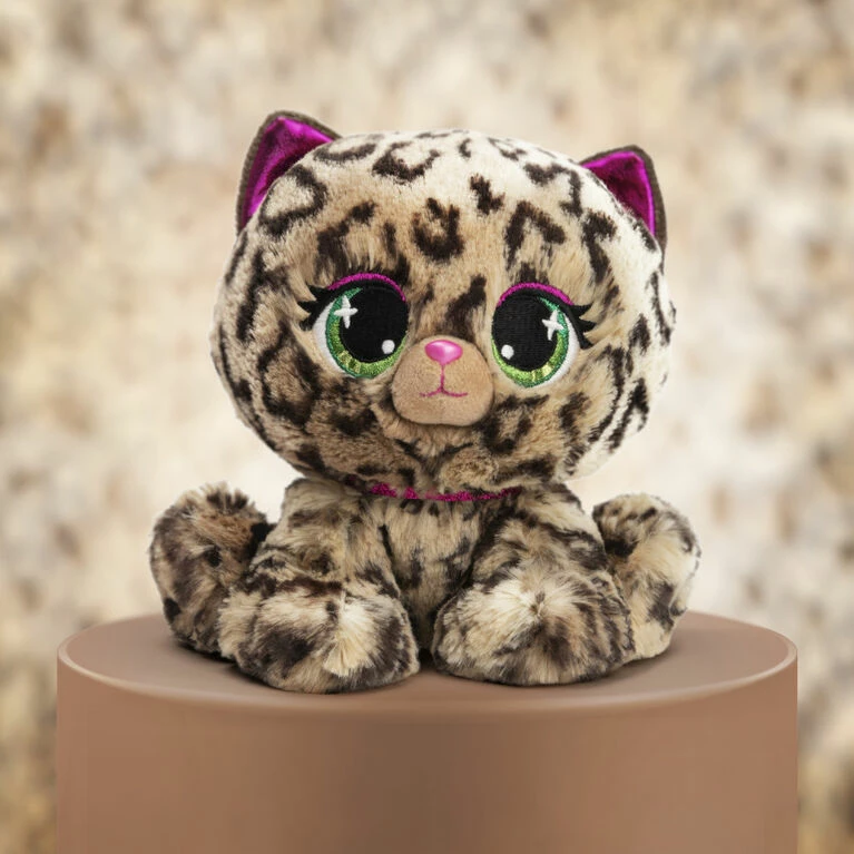 P.Lushes Pets are designer plush from all around the world who love to look their best. Everywhere is your personal runway with P.Lushes Pets! This stylish squad of fabulous fashionistas serves chic with a sprinkle of attitude and a whole lot of glitter. Luxe, premium fabric and a sparkling collar enhance their fashion-inspired looks! Let loose and get a little wild! Sadie Spotson is the lightest leopard on her toes once the music begins! Join her on the dance floor as she lights up the night with her moves and attends all the best performances Chicago has to offer. This wild child with the super soft spots doesn’t shy away from a good time or color with her bright pink ears and eyeshadow paired with emerald green eyes that flash with every move! Her glittering pink collar is a beacon to the DJ to turn the music up for all her friends to get their groove on together! Collect them all, including the Limited Edition and Special Edition chase plush.