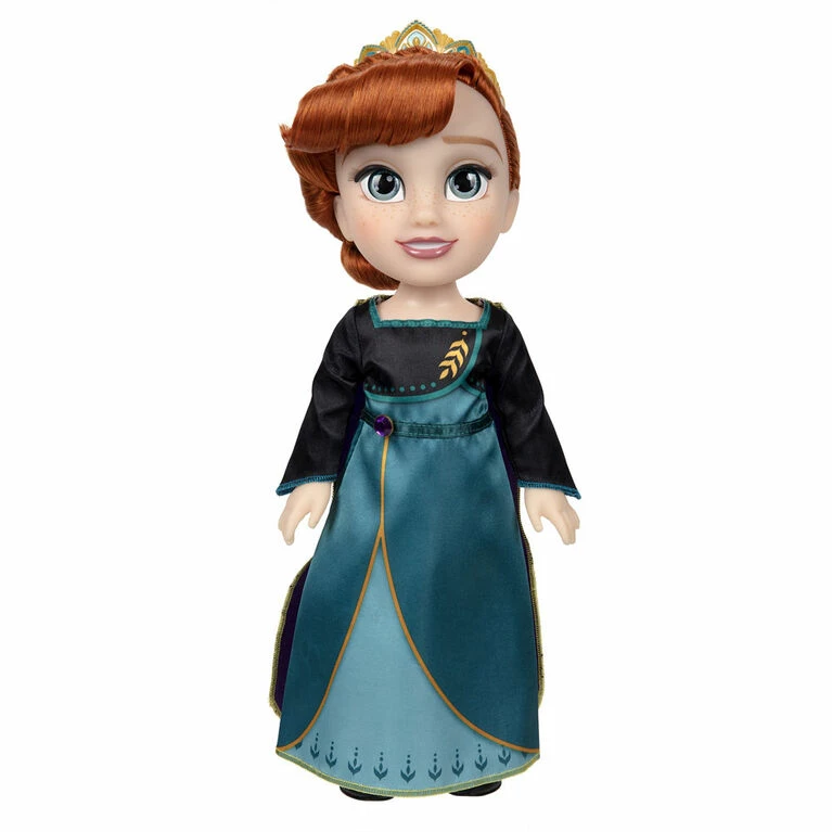 Join Anna at the beginning of the next chapter of her life, as Queen of Arendelle, with Disney Frozen 2 Queen Anna Doll! Anna is warm and loving, and the brave new leader of Arendelle. She is dressed in her iconic, film-inspired Queen Anna fashion that includes a silky teal and turquoise dress with rich black, purple and gold detail with a matching cape and bejeweled belt. To complete her look, Anna is wearing a beautiful tiara infused with the crocus symbol- the crest of Arendelle.
