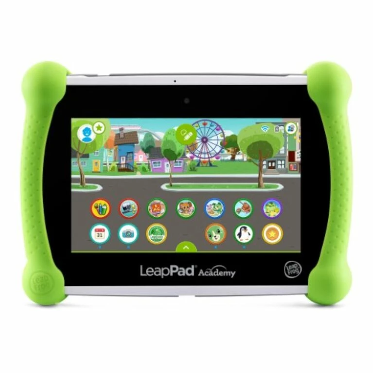 Inspire school success with LeapPad® Academy. This learning tablet is preloaded with more than 20 educator-approved apps that explore math, reading, writing, coding, problem-solving and creativity skills. Kid-friendly right out of the box, this tablet has a tough bumper with a built-in kickstand and a 7″ shatter-safe screen. Inside, it includes parent controls that can be used to set time limits, expand content and add websites to LeapSearch®, LeapFrog’s kid-friendly web browser. Download additional content by visiting the LeapFrog® learning library to check out 750+ games, apps, videos and music or download popular Android apps (additional content sold separately). As a bonus, LeapPad® Academy includes a three-month free trial of LeapFrog Academy®, an interactive learning program that progressively guides children on Learning Adventures across more than 2,000 games and activities. Intended for ages 3-8 years. Rechargeable lithium ion battery included.