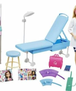 Explore a world of caretaking fun with the Barbie medical doctor playset! When a girl plays with Barbie, she imagines everything she can become, and if you love helping others and taking care of people, you can be a medical doctor! Playset features the Barbie medical doctor doll (12-in/30.40-cm) wearing a cute polka dress, white coat and sporting a stethoscope plus over 20 medical accessories! Kids can play out the storytelling fun with the medical station and make notes on the computer and tablet, examine patients on the adjustable medical table with nearby lamp and stool, take blood pressure with the monitor, apply an arm or leg cast and decorate each with stickers. They can also check patients with the thermometer, otoscope, hammer and other tools, look at the x-ray and provide 2 mini Barbie magazines for waiting patients! And don’t forget to take the tools on the go with the doctor bag! Some items have a clip so Barbie medical doctor can hold them for realistic play! Doll cannot stand alone. Colors and decorations may vary. Makes a great gift for ages 3 years old and up. ​