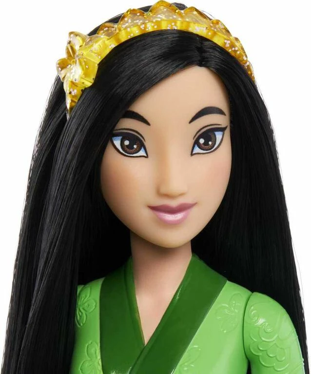 Meet this Mulan doll, inspired by the courageous and strong-willed princess from the classic Disney movie. This posable fashion doll is shown in a sparkling outfit and accessories that include shoes and a tiara. In her signature look from the movie, this Mulan doll is ready for any adventure! Doll cannot stand alone. Colors and decorations may vary.