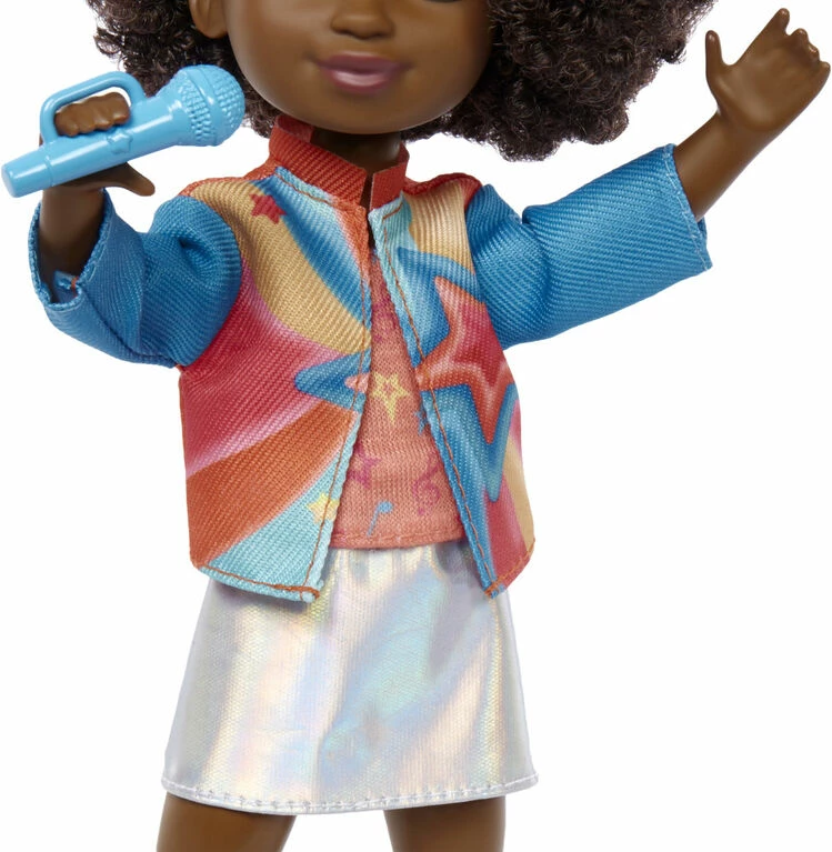 Take Karma’s style to the next level with this School to Stage Fashion Pack! Style the included Karma doll (8.7-in) with this 14-piece set complete with two outfits. With this wardrobe of high-top sneakers, shorts, a shimmery skirt, backpack, her iconic journal, mic, and more — Karma doll has all the clothes and accessories she needs for adventures at school or a show on stage. Style, mix, match, then help Karma drop a cool track! Colors and decorations may vary.