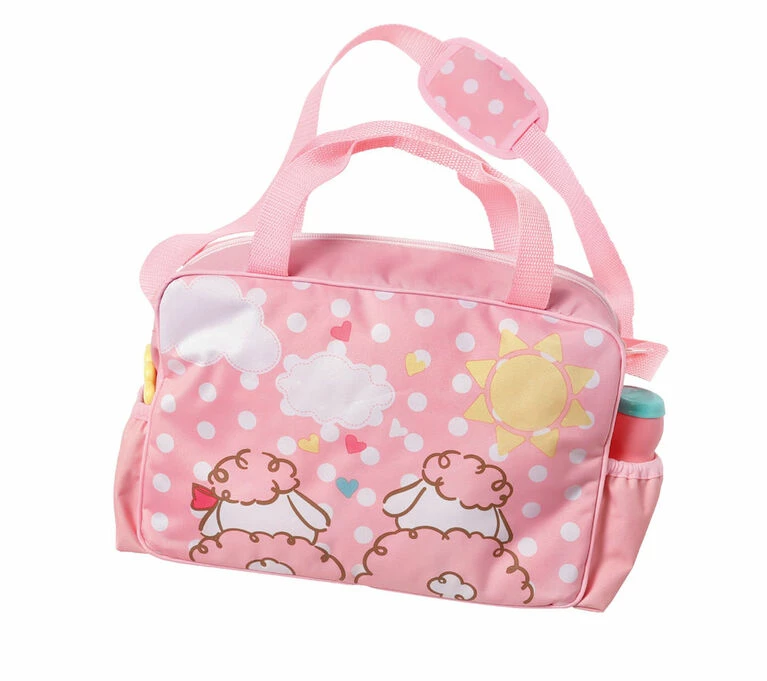 A practical and chic changing bag with all necessary accessories when Baby Annabell goes out and about. Includes changing mat, nappy, teething ring and a bottle. Colours and styles may vary.