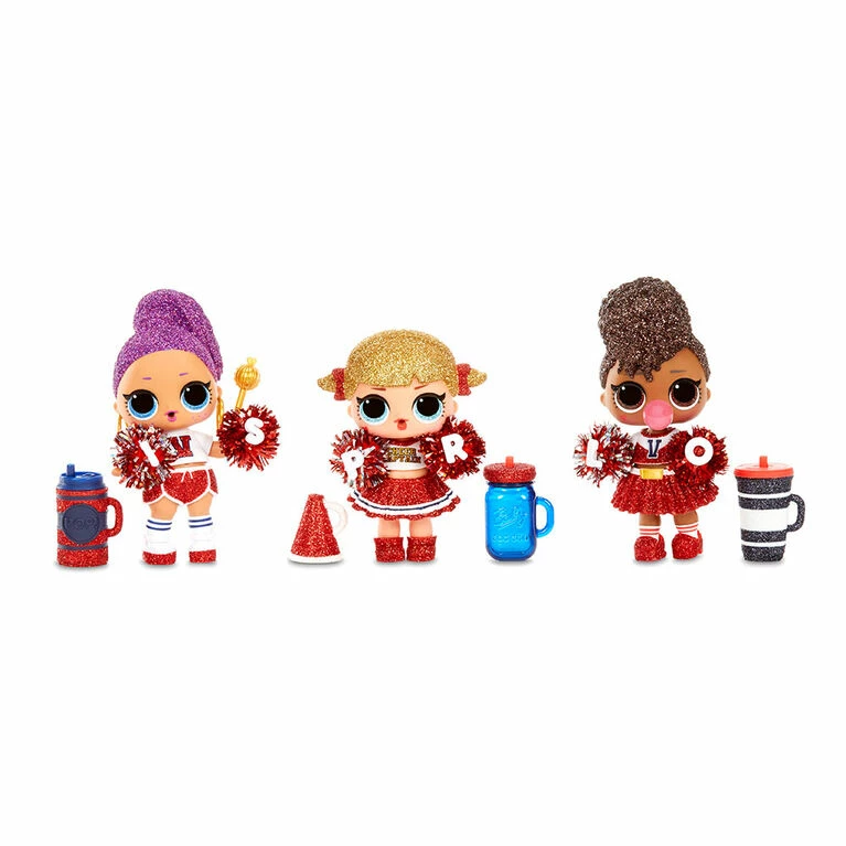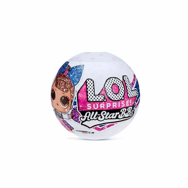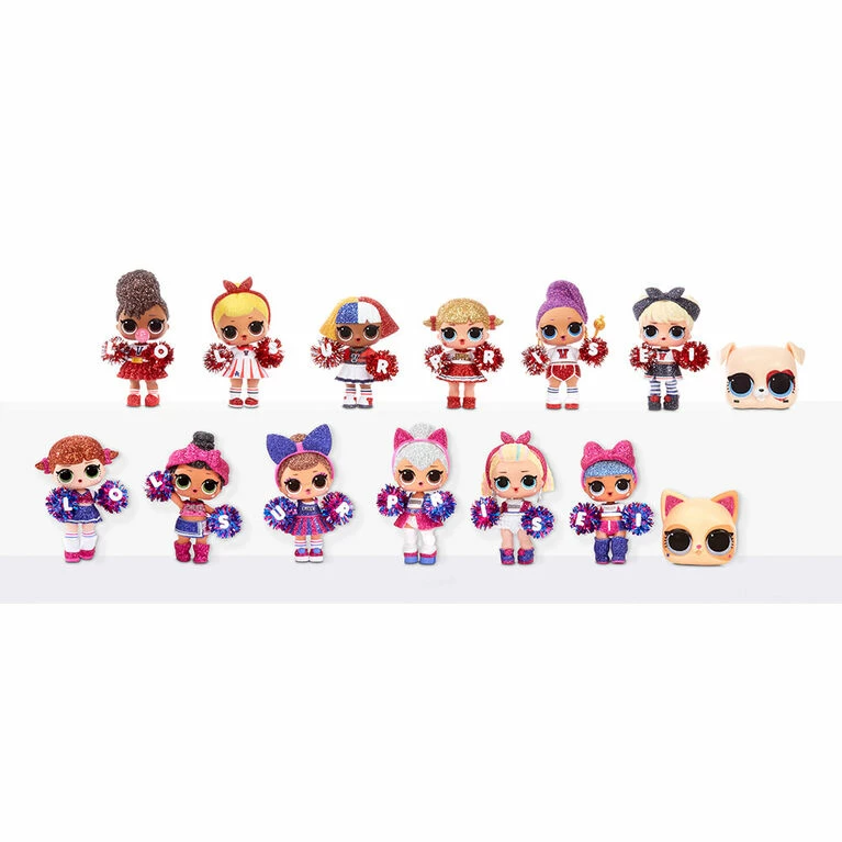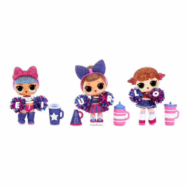 Ready? Okay! Gimme a C-H-E-E-R! Unbox 8 surprises with L.O.L. Surprise! All Star B.B.s Series 2 Cheer Team. These fan favorite characters got a sparkly makeover and joined a fierce cheerleading team, because they all come with all new cheerleader uniforms, pom poms and cheer-themed accessories. Collect both teams – the Cheer Cats and the Varsity Pups. Will you find a mascot B.B. or a cutie who loves to lead the team in a cheer? Feed or bathe your doll for a water surprise. And each doll includes her own collectible trading card that doubles as a backdrop. The new ball has a slot to place the trading card behind your doll for a cute photo op. Collect all 12 sparkly, cheer characters on 2 teams. 8 surprises: (1) Secret Message; (2) Trading Cards; (3) Bottle; (4-5) Accessories; (6) Fashion; (7) Shoes; (8) L.O.L. Surprise! All Star B.B.s doll. PRO TIP: Collect all the characters on one team and their pom poms spell out L.O.L. Surprise!