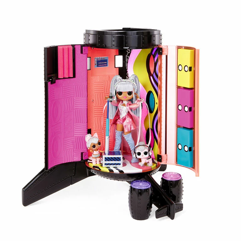 B.B.s, this is your captain speaking, we are ready for takeoff! Travel in style in the L.O.L. Surprise! O.M.G. Remix 4-in-1 Plane. This transforming playset is 4-in-1: Plane, Car, Recording Studio and Mixing Booth. Unbox 50 surprises, including working lights and sounds, drink cart with plates and cups, rolling suitcases, overhead compartments that open and close, seatbelts and more! Fits L.O.L. Surprise! O.M.G. fashion dolls and all other L.O.L. Surprise! dolls. The 4-in-1 Plane is about to take our superstar B.B.s to the ultimate concert – the So Extra Tour. They board the plane, where B.B.s can relax on a long flight. Then, when they land, pull out the seat section and it becomes a surprise car to drive to the concert. But suddenly, music inspiration strikes, and these queens have to record a new song! Detach and turn plane on its side to create a recording studio and mixing booth, where B.B.s can work on their latest remix. Plane includes seats for 4 dolls plus a pilot’s seat. Front seats swivel around, so BFFs can chat on the flight. Then, when it’s time to sleep, seats recline for B.B.s to get their beauty rest. Also includes so many accessories: 2 neck pillows, 2 sleep masks, 2 microphones, 2 headsets, 2 blankets, tablet accessory, ticket, passport and more!