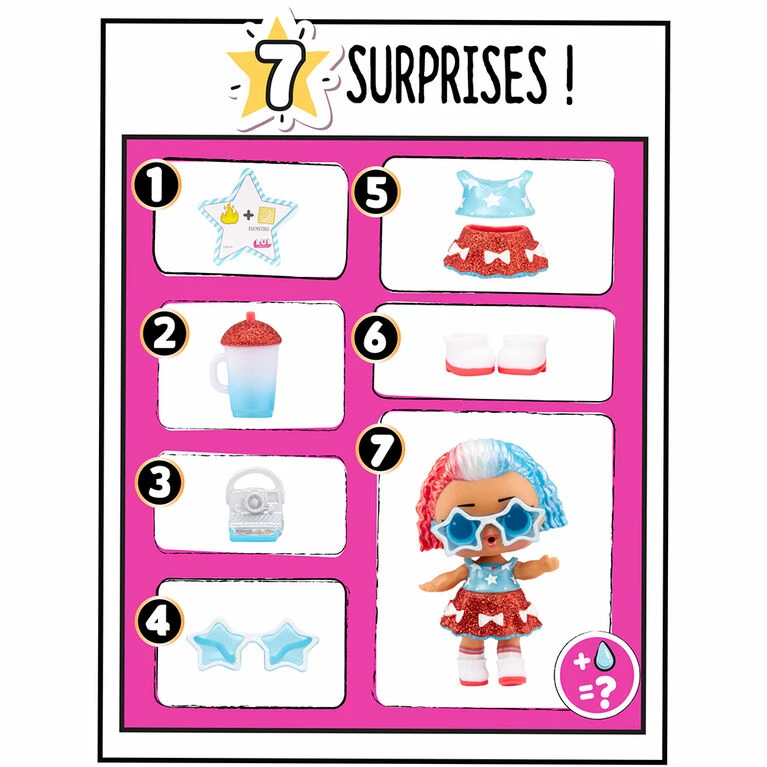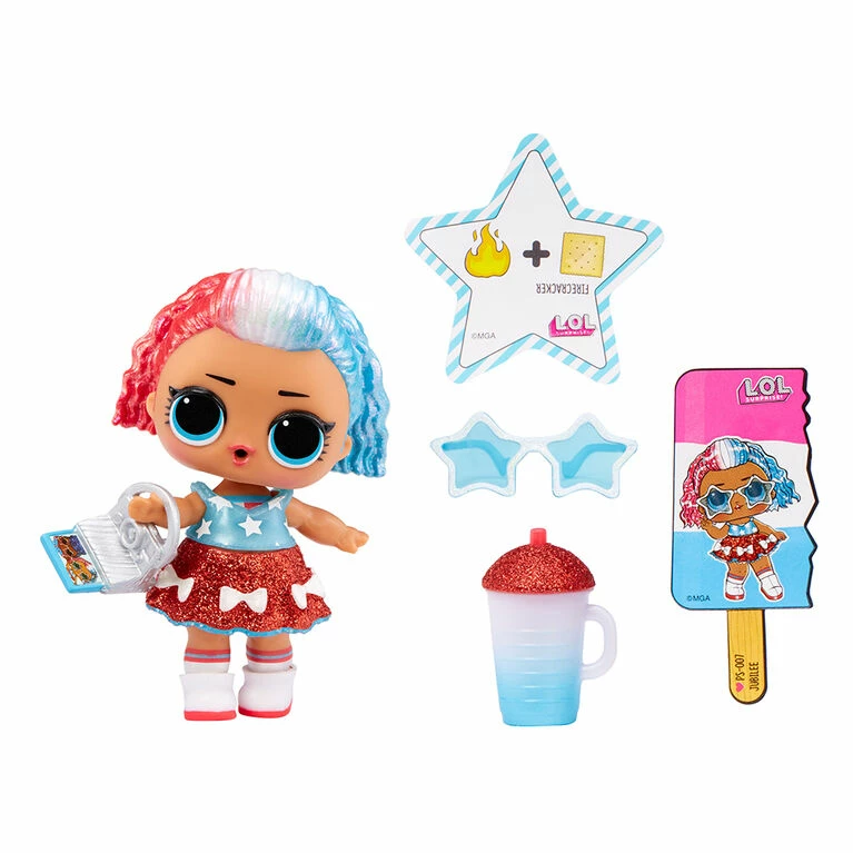Each LOL Surprise Summer Dayz doll includes 7 surprises: (1) Limited Edition LOL Surprise Summer Dayz doll in Paper Ball Packaging; (2) Secret Message; (3) Bottle; (4) Glasses; (5) Outfit; (6) Shoes; (7) Snack Accessory. Collect both Independent Queen and Jubilee!