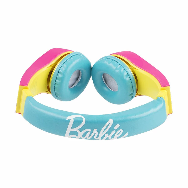 Listening to music is an adventure! And what better way to explore it than to sling these Barbie Kids Safe Headphones over your ears. Detailed graphics of your favorite Barbie characters are featured on each ear piece to join you on your musical journey, while soft cushioned ear pads and an adjustable headband ensure a great listening experience. A built-in volume limiter delivers your music in studio quality and safe sound levels, pleasing both kids and parents alike.