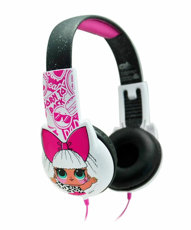 Listen to your favourite music, rock out, and just be you with a pair of L.O.L. Surprise! Kid-Safe Headphones! With a built-in volume limiter that provides a safe listen for young ears, these headphones control just how loud you can listen to your favorite songs and gives you a great quality audio experience with maximized comfort.