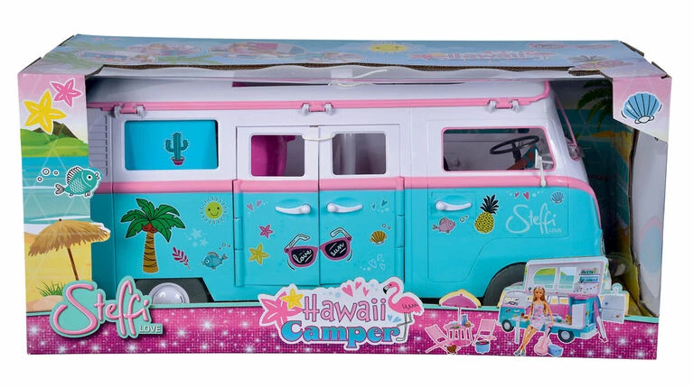 Experience unforgettable motorhome fun with Steffi and make your travel dreams come true. The turquoise camper is 51cm long and offers plenty of variety to play with Steffi. Steffi can sit comfortably in her driver’s seat and turn around a bit or flip the chair over and use it as a dining chair in the living room. Steffi is going to surf the waves. For the perfect dinner, there is a large kitchen or a cool grill in the motorhome. There are also plenty of accessories so it never gets boring. The motorhome can be individually decorated with the included stickers. Suitable for children from 3 years old.
