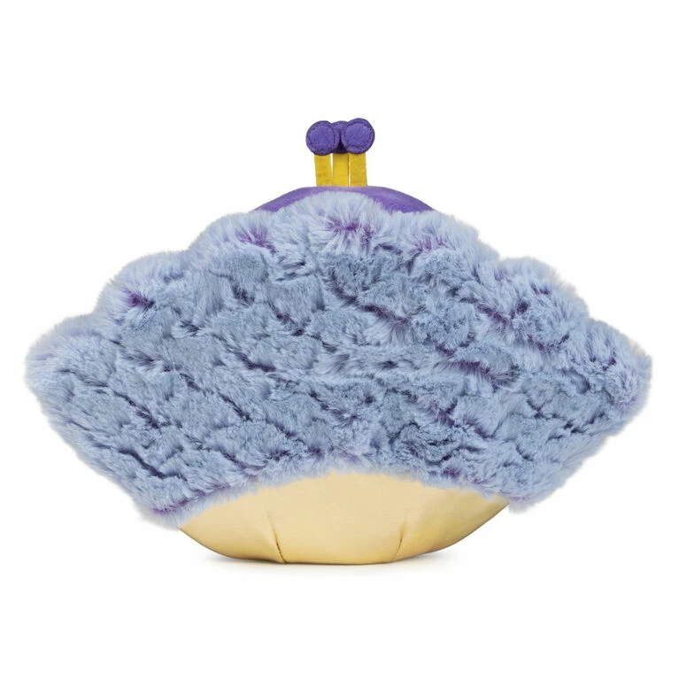 Not afraid to be showy, Priscilla Plume knows how to stand out from the crowd. This confident peacock loves to strut her soft periwinkle feather fan wherever she goes. Her bright, premium purple plush is accented by a golden beak, feet, and eyes, with a dash of bright blue shadow. Her favorite flower is begonias, which can be found blooming all around her home in Sri Lanka.