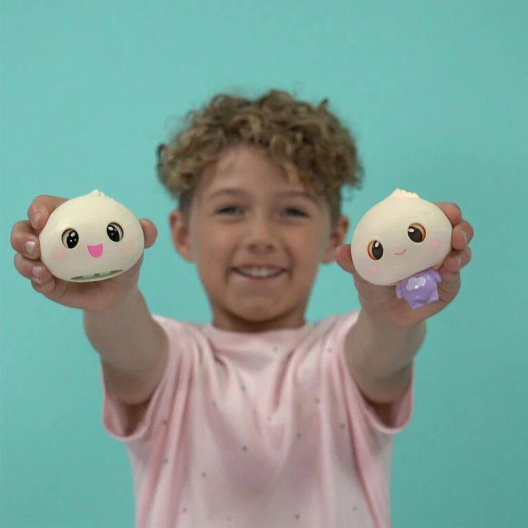 Can YOU resist the squish?! Introducing My Squishy Little Dumplings from WowWee. Adorable little interactive characters with BIG personalities, and the cutest accessories to match! My Squishy Little Dumplings are the perfect pal that fit in the palm of your hand. Squeeze their cheeks to pop out their unique personalities! They even speak their own language called Squishpop! Listen closely and you may just learn the language! Plus, Your Squishy Little Dumpling will tell you how they’re feeling using the light on their head! With over 50 reactions; dress them up, tickle them, shake them, and toss them, they light up as you play and make the cutest sounds! Get popping with My Squishy Little Dumplings by collecting all 4 characters! Fun for Ages 5+.
