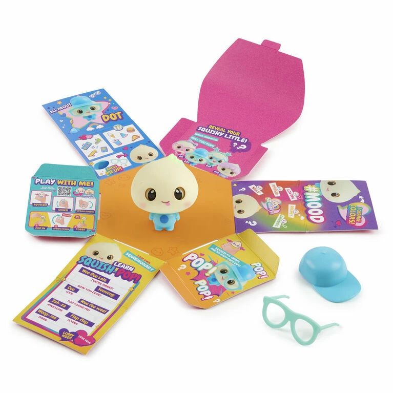Can YOU resist the squish?! Introducing My Squishy Little Dumplings from WowWee. Adorable little interactive characters with BIG personalities, and the cutest accessories to match! My Squishy Little Dumplings are the perfect pal that fit in the palm of your hand. Squeeze their cheeks to pop out their unique personalities! They even speak their own language called Squishpop! Listen closely and you may just learn the language! Plus, Your Squishy Little Dumpling will tell you how they’re feeling using the light on their head! With over 50 reactions; dress them up, tickle them, shake them, and toss them, they light up as you play and make the cutest sounds! Get popping with My Squishy Little Dumplings by collecting all 4 characters! Fun for Ages 5+.